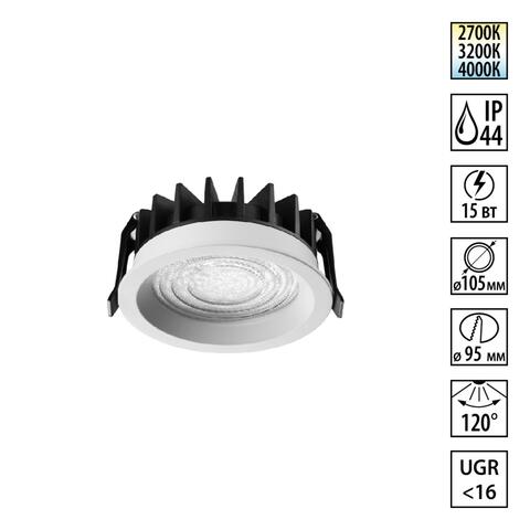 Встраиваемый светодиодный светильник Novotech FLUO 359844 NT 15Вт 2700/3200/4000К 220-240В IP44 WIR