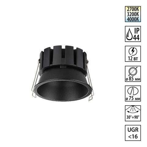 Встраиваемый светодиодный светильник Novotech SOLIS 359858 NT 12Вт 2700/3200/4000К 220-240В IP44 WIR