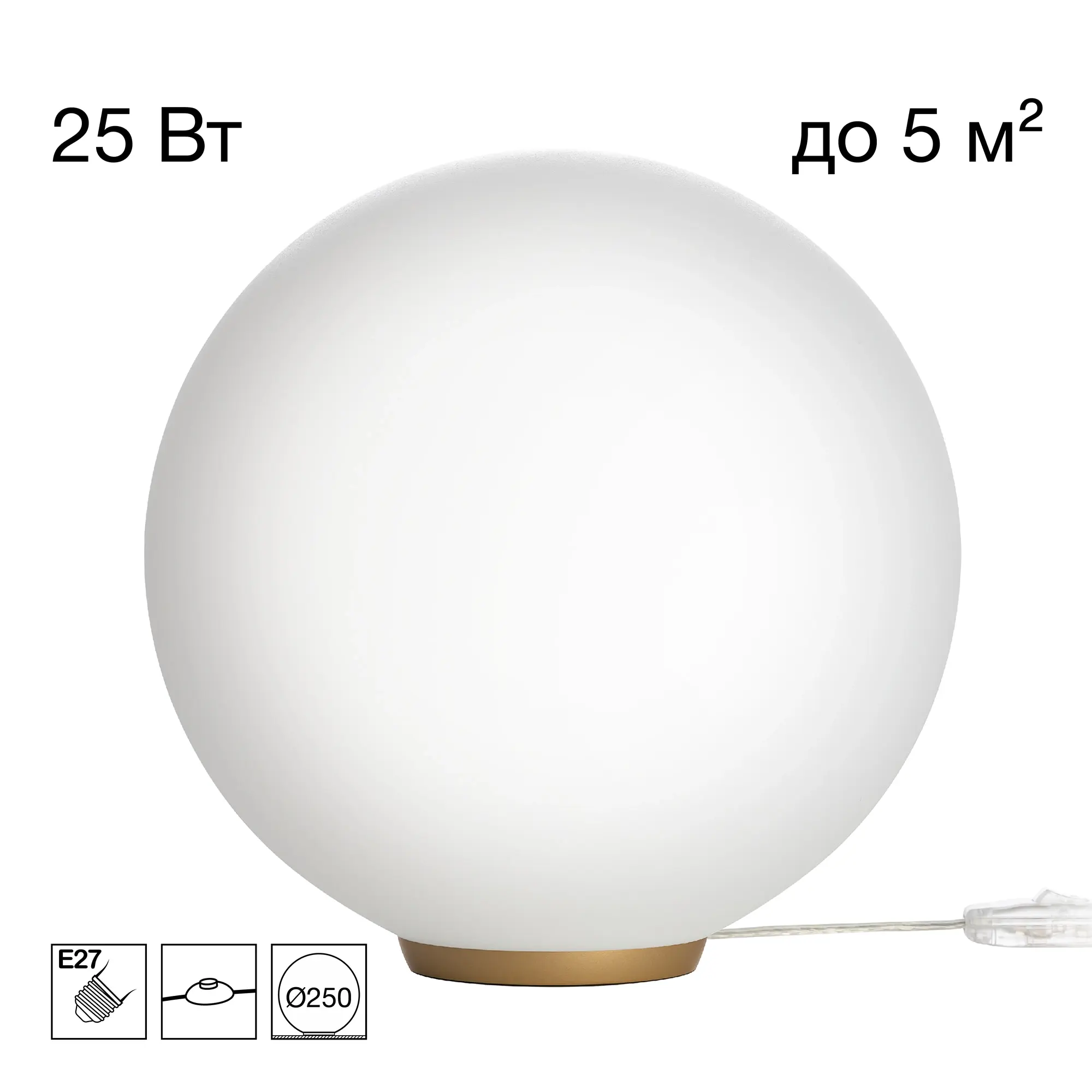 Минималистская настольная лампа шар Citilux RON CL941D25T2 с лаконичной геометрией легко впишется практически в любой интерьер, наполняя комнату светом, но не отвлекая вычурным дизайном. На золотистом основании высотой 12мм из высокопрочного полимера располагается белый матовый плафон-сфера диаметром 25см, изготовленный из специализированного оптического полимера. Удобный выключатель располагается на проводе. В изделии используется одна светодиодная лампочка с цоколем Е27. Благодаря форме и фактуре плафона светильник освещает пространство мягким и уютным заливным светом.