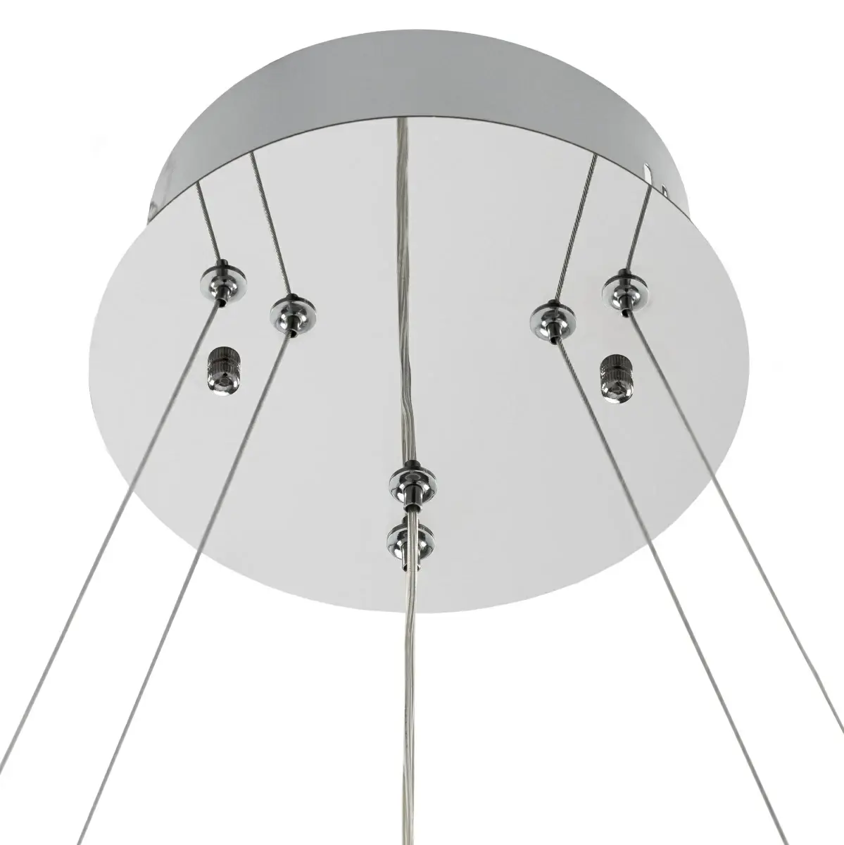 Высота подвесной модели легко регулируется в диапазоне от 40см до 1,5м, что делает ее идеальным решением для помещений с высокими, стандартными и низкими потолками. Диаметр внешнего кольца 800мм, среднего 600мм, внутреннего 400мм. Мощность изделия 140Вт, что позволяет ей осветить площадь до 33м², создавая при этом яркое и равномерное освещение.