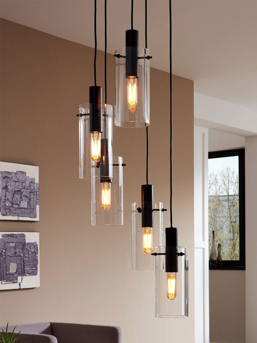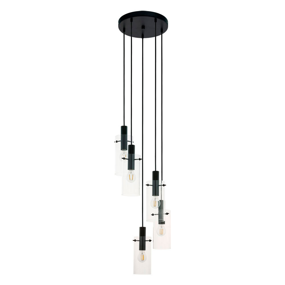 Производитель Eglo Источник света сменные лампы Цоколь E27 Количество ламп 5 Максимальная мощность ламп, W 60 Диаметр, мм 350 Высота, мм 1500 Материал изделия сталь Цвет изделия черный Материал плафона стекло Цвет плафона прозрачный Степень пылевлагозащиты IP20 Напряжение, V 220