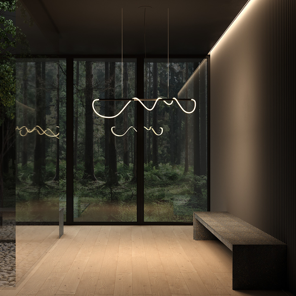 Алюминиевый корпус. Оттенки – золотой, матовый черный. Рассеиватель двух видов – силиконовая трубка и сверхкрепкий жгут (не желтеет со временем, обладает высокой прочностью). Мягкое равномерное свечение благодаря высокой плотности светодиодов. Цветовая температура 3000К. LED-источник света.