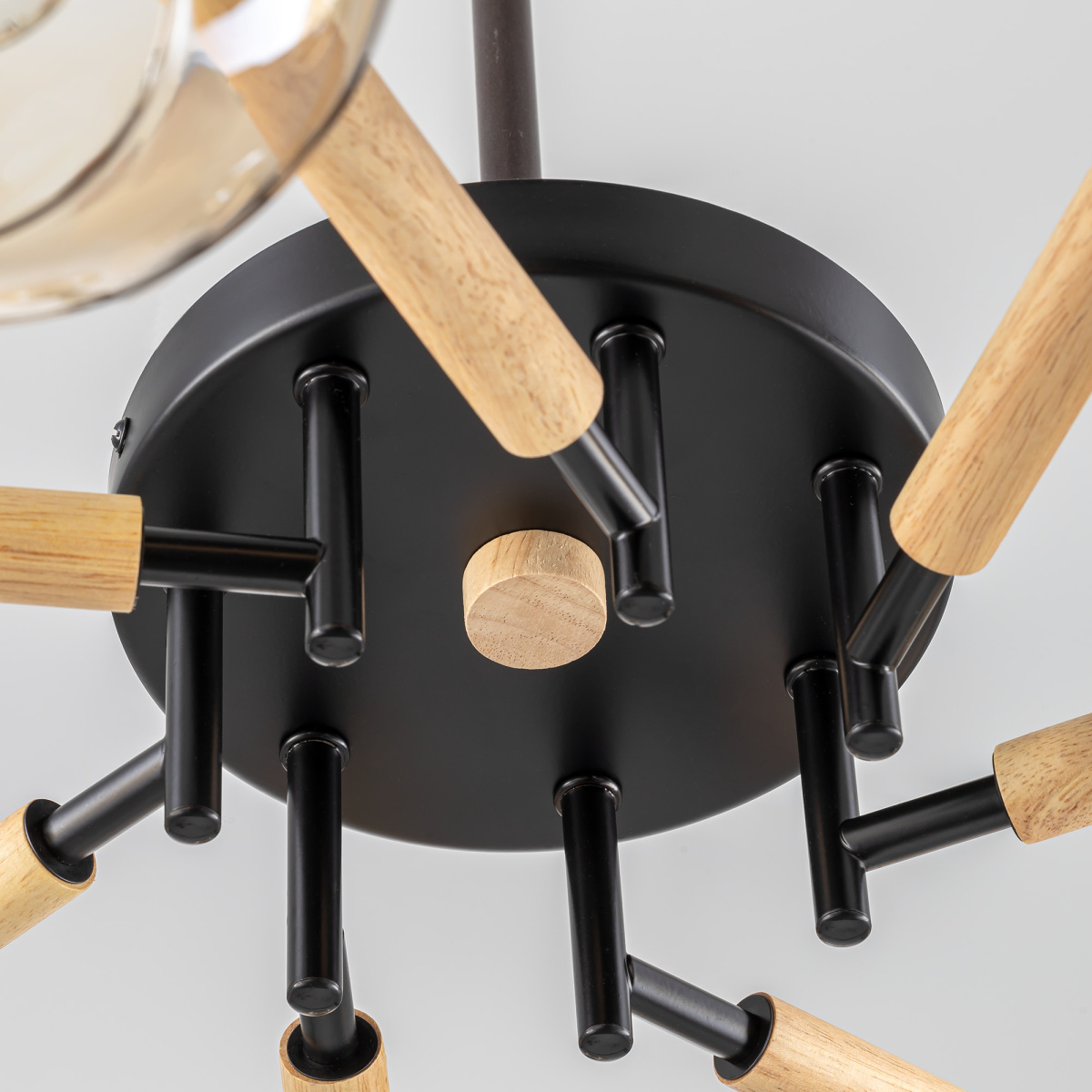 Потолочная люстра Citilux CL133171 Tika станет идеальным решением для вашего интерьера! Модный стиль лофт, металлический чёрный матовый корпус, натуральное дерево и плафоны из прозрачного стекла светло-янтарного оттенка превратят вашу комнату в уютный уголок. Поворотные шарниры позволяют направить плафоны в любую сторону, а тип крепления рожков собрать компактную или раскидистую модель.