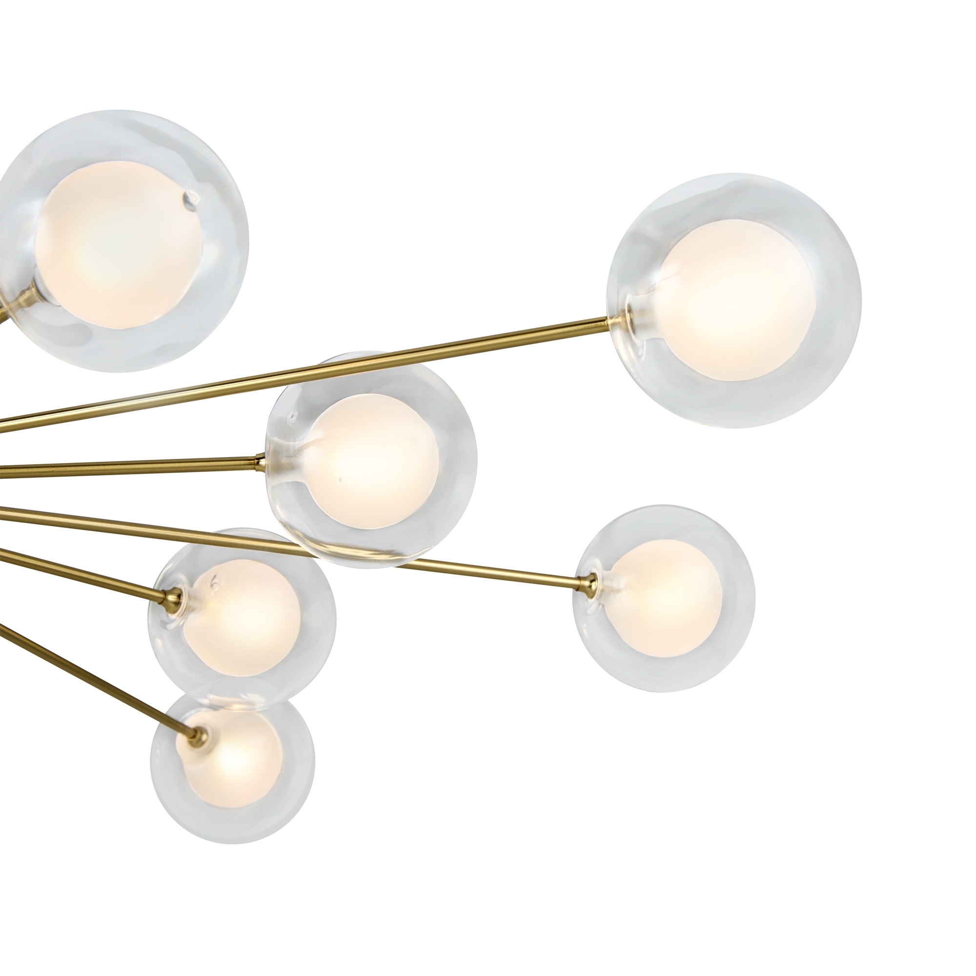 Celebrity ー это изобретательное произведение искусства. Источник света представлен двумя видами плафонов: двойное стекло и акриловое стекло в сочетании с латунной металлической окантовкой. Эти маленькие огоньки раскинуты по всей площади светильника и создают ощущение, что в вашей квартире есть свое небольшое звёздное небо. Плафоны расположены на концах арматур, которые по кругу выходят из цилиндра в центре. Материал плафонов: стекло, акрил. Цвета арматуры: черный и золото.