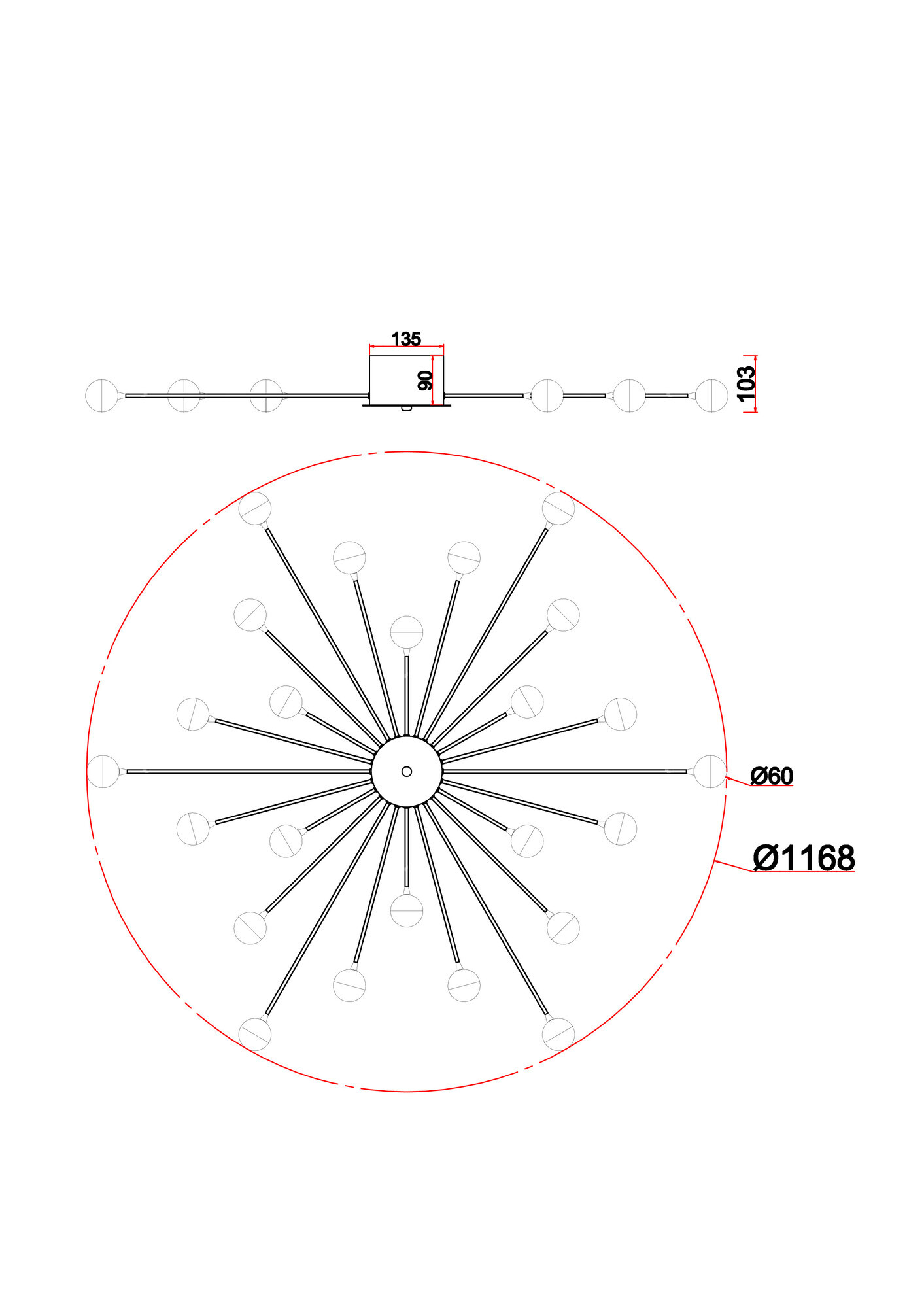 Celebrity ー это изобретательное произведение искусства. Источник света представлен двумя видами плафонов: двойное стекло и акриловое стекло в сочетании с латунной металлической окантовкой. Эти маленькие огоньки раскинуты по всей площади светильника и создают ощущение, что в вашей квартире есть свое небольшое звёздное небо. Плафоны расположены на концах арматур, которые по кругу выходят из цилиндра в центре. Материал плафонов: стекло, акрил. Цвета арматуры: черный и золото.