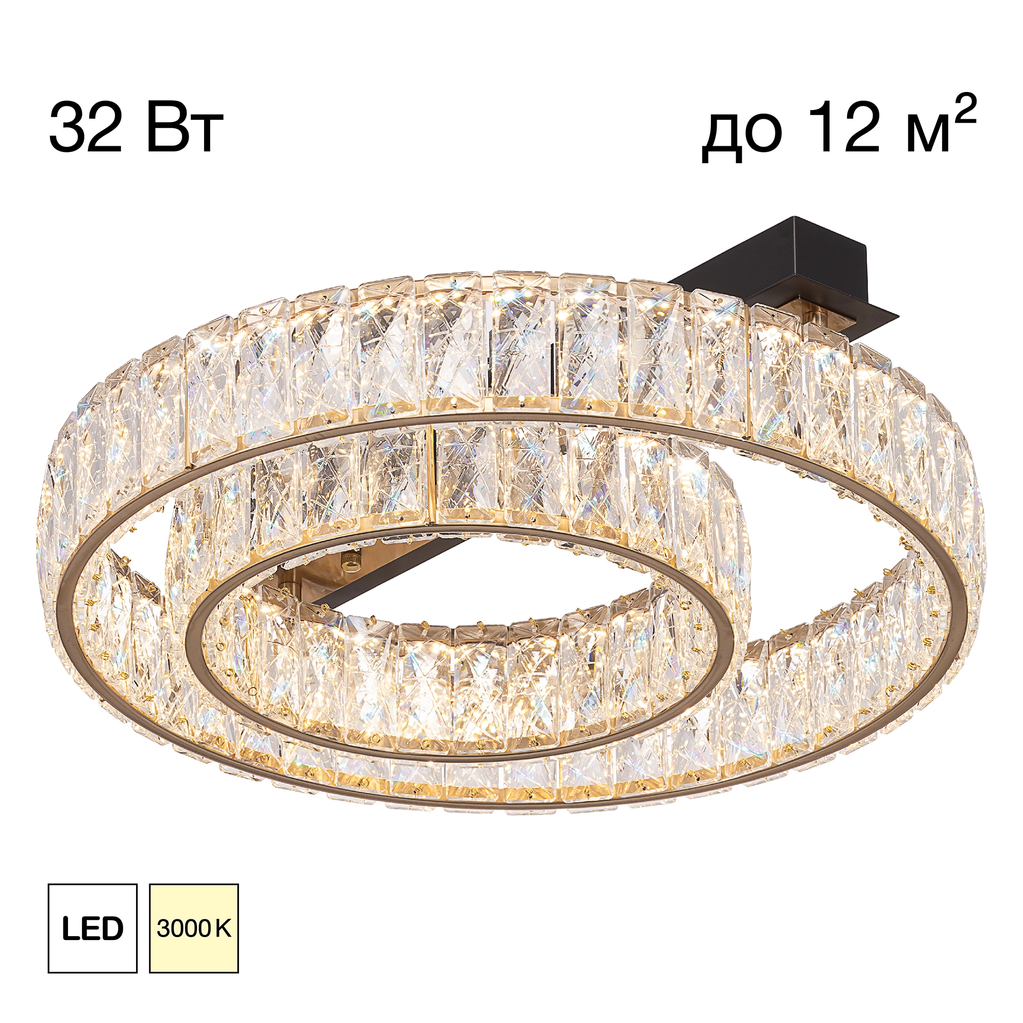 Хрустальная потолочная люстра Citilux PALANT CL325152 в современном стиле — это прекрасный образец сочетания классического хрусталя и новейших светодиодных технологий. Каркас люстры — металлический, сочетаются черные и бронзовые элементы. На прямоугольном основании закреплены два кольца-модуля с хрустальным рассеивателем. Светодиодный свет с цветовой температурой 3000К мягко рассеивается в пространстве, играя на хрустальных гранях радужными искрами. Общая мощность люстры — 32Вт, ее можно установить на любой потолок, в том числе, натяжной.